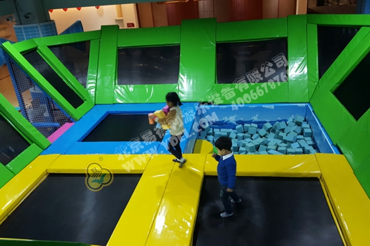正面蹦,側面蹦,這就是超級蹦床的無限可能,一言不合就跳入中間的海綿塊池體中暢游。框架爬上燈塔瞭望....