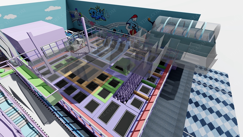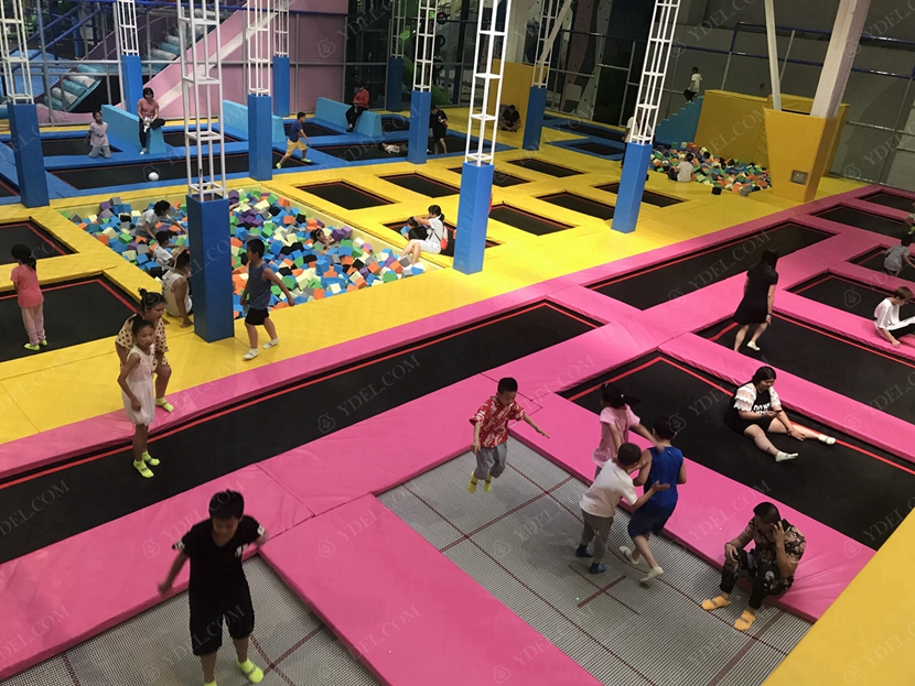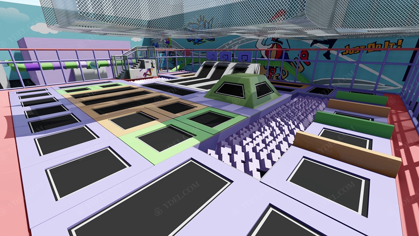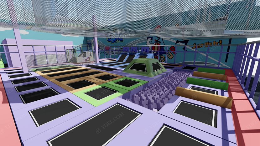 BCGY-17大型蹦床樂園采用分層設計,下面是蹦床公園,上層則是設計成拓展游戲項目,這樣既節(jié)約了場地又豐富了玩法,這樣的大型蹦床樂園設計可提供更為豐富的玩法體驗。
