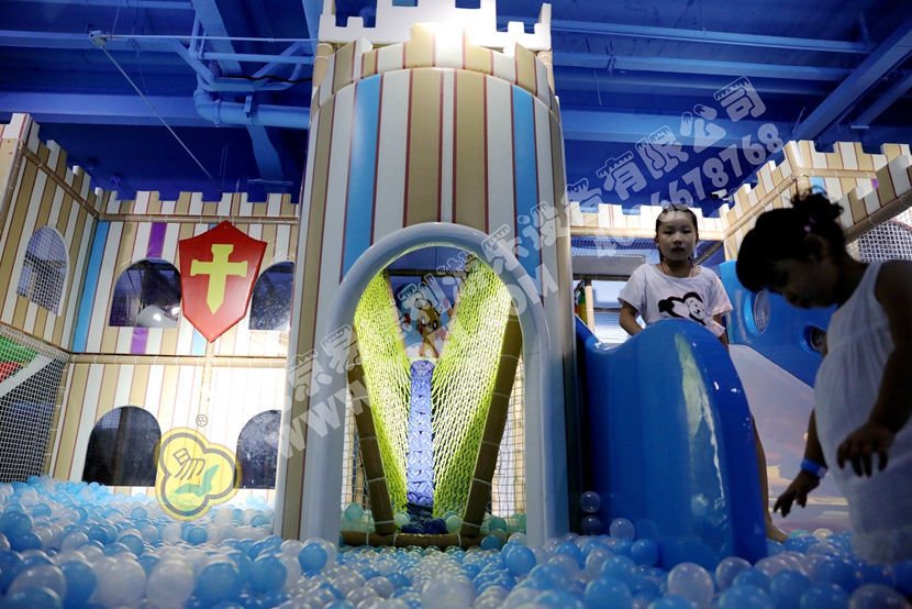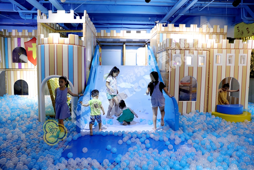 全新城堡主題,藍(lán)白半透明海洋球仿佛天空中的云朵,碩大的城堡沖入云霄,可謂真正的天空之城。腳下踩著云,去挑戰(zhàn)那城堡上的刺激,哪個孩子不愛呢?