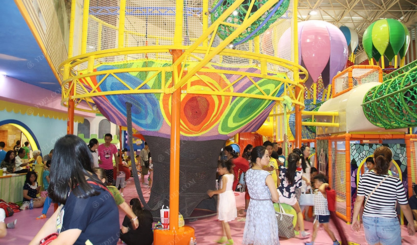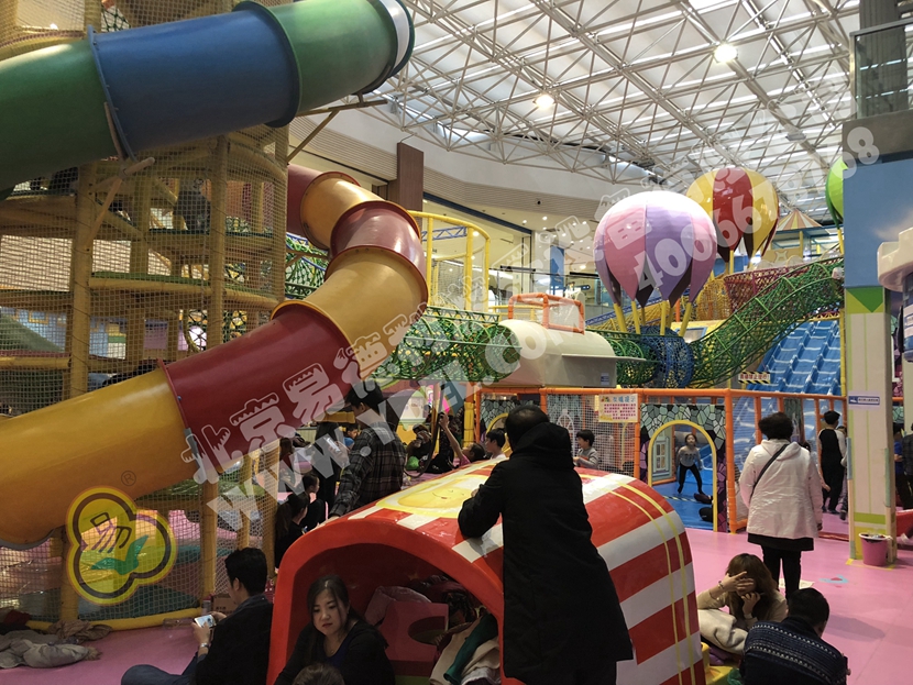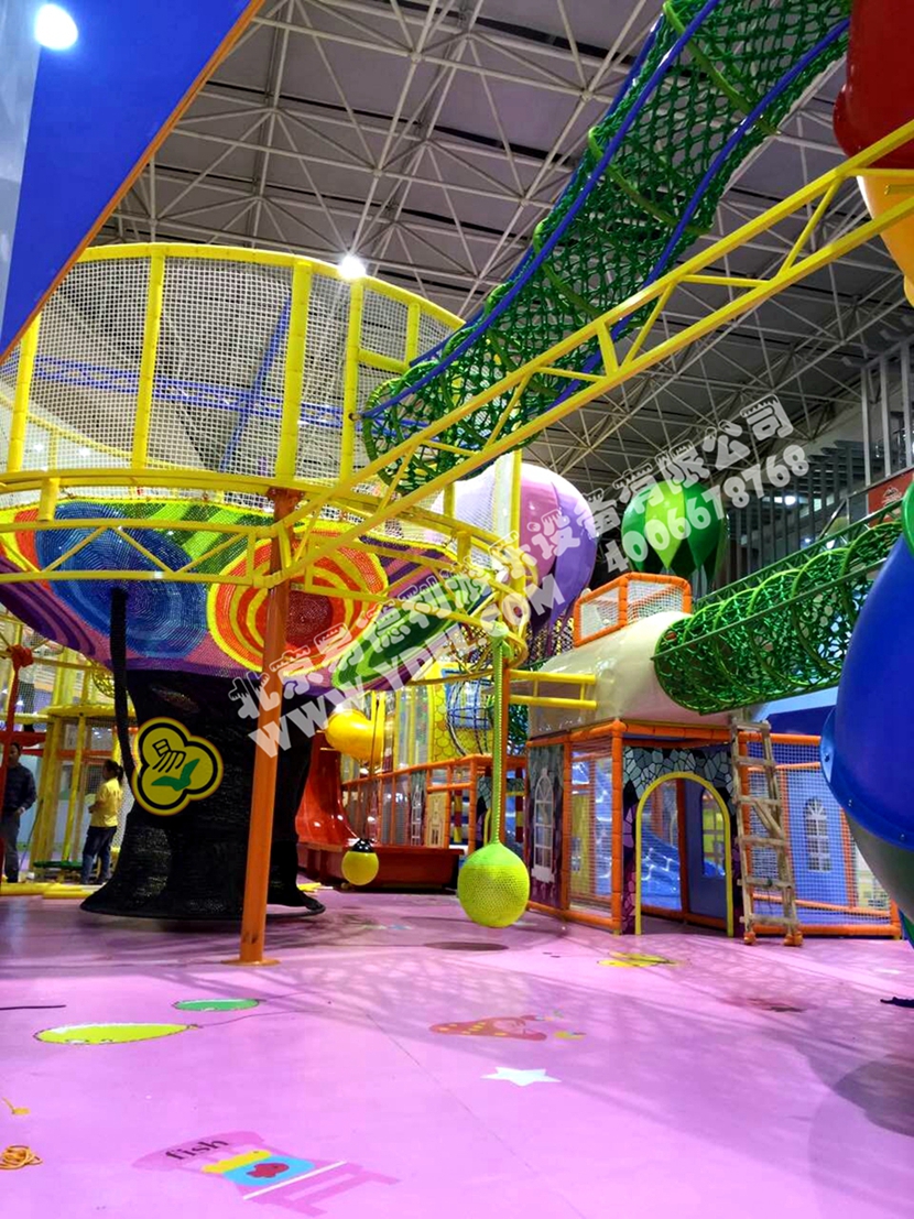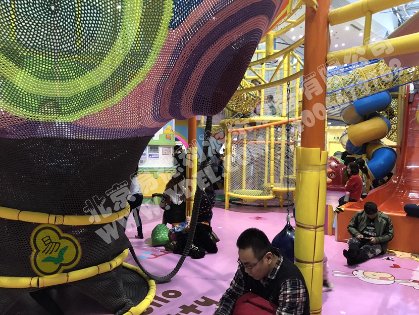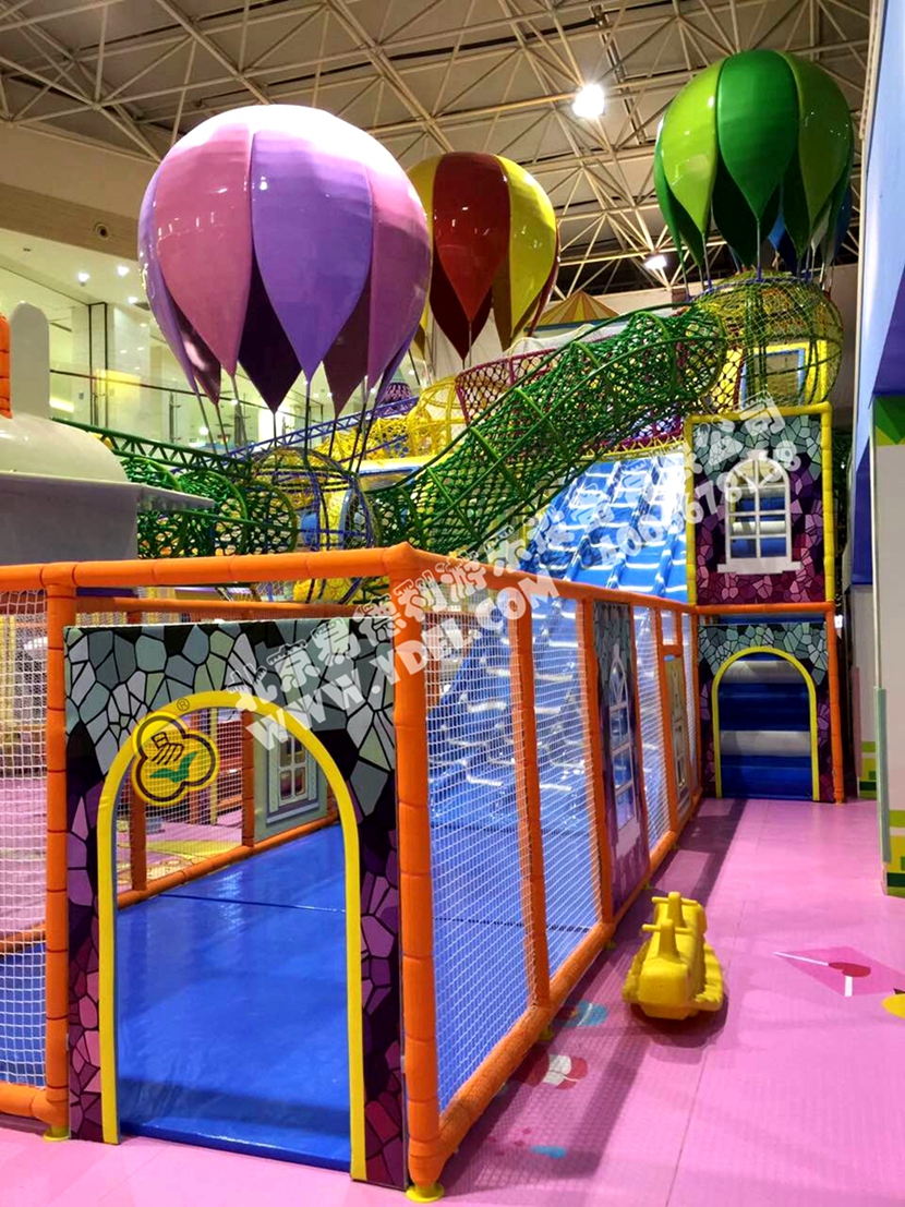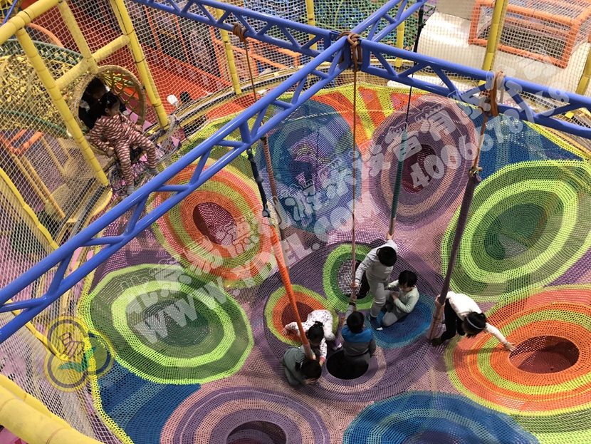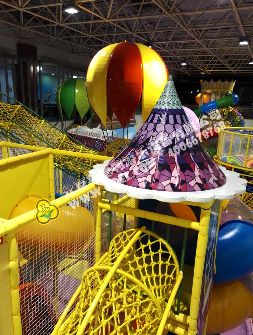 分兩個區域:淘氣城堡和闖關區;這個項目集成了多種新產品及設計理念,我們的設計人員與安裝人員是功不可沒的!下面我帶您看看這些新奇好玩的游樂設備!