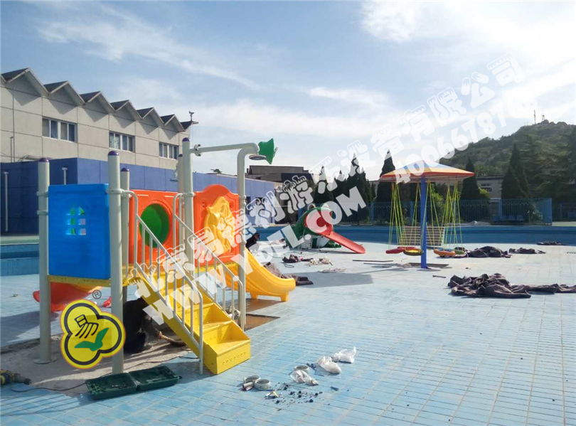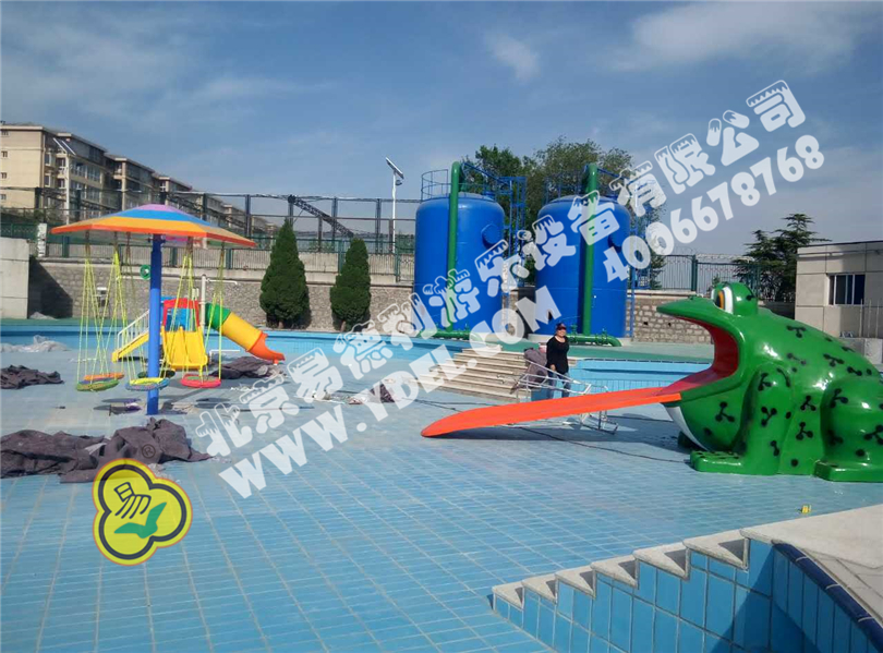 吐著大紅舌頭的青蛙滑梯小品,形象栩栩如生,小小水滑梯,簡(jiǎn)單卻也是一種樂(lè)趣,水秋千,在水里也能享受陸上游樂(lè)玩耍。