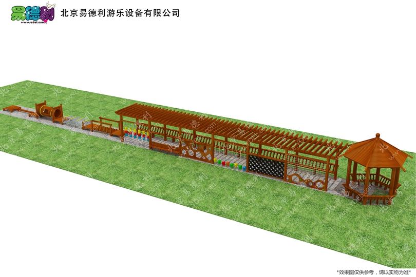 內蒙幼兒園戶外游樂設施整體規劃建設,包含地面、廊架、話題、木質拓展訓練組合。