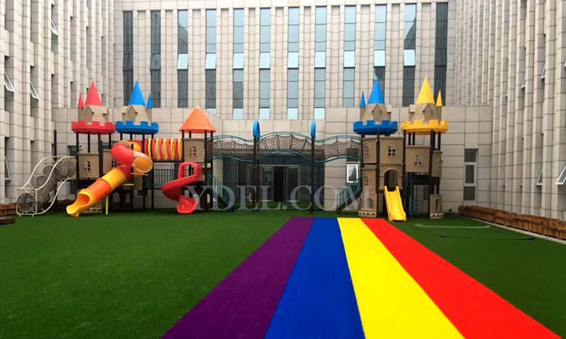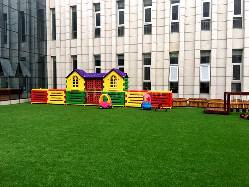 北大培文幼兒園城堡滑梯大門兩側(cè)依次擺開,中間空中網(wǎng)龍連接,進大門就氣場全開,吸引不少眼球;小屋造型塑料收納柜,常年不褪色,堅固耐用。